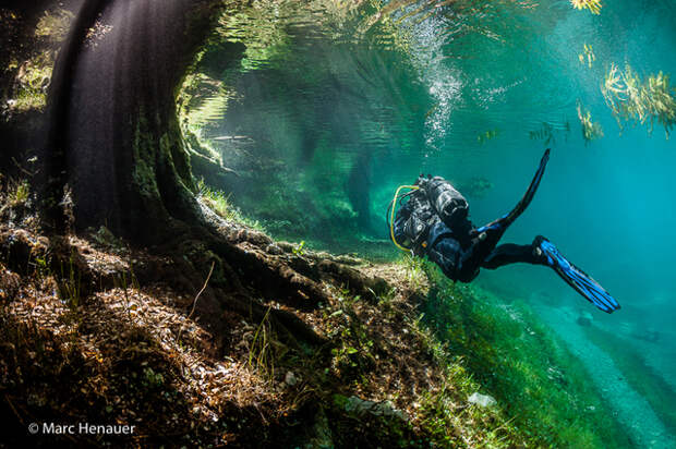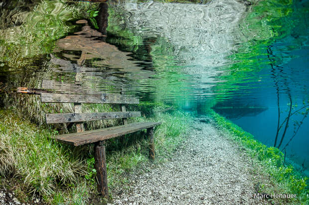 Каждый год этот австрийский парк превращается в огромный бассейн, где все пешеходные дорожки, лавочки и всё остальное погружается под воду. Нет, это не катаклизм, утверждает фотограф Marc Henauer. Скорее всего необычный природный феномен вызван таяниям снега, что увеличивает весной уровень воды в озере.