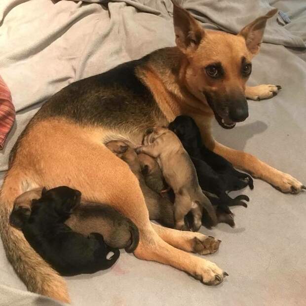 Через 5 дней Мари родила 7 замечательных щенят. Она стала хорошей мамой и малыши быстро растут. Для них уже ищут семьи, а саму Мари Уинн решила оставить себе — ей очень понравилась эта спокойная и умная собака.