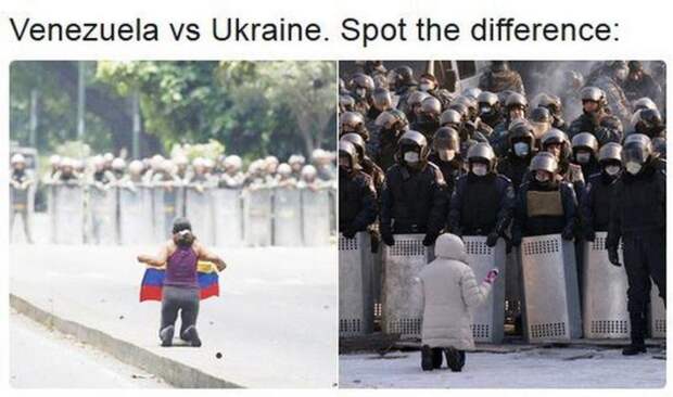 В эти дни в далекой Венесуэле проходят гражданские беспорядки, уже унесшие жизни 121 гражданина этой южноамериканской страны. Пользователи reddit провели параллели с прошедшим несколько лет назад государственным переворотом на Украине и обнаружили немало совпадений в медийной подаче этих событий для телевидения.
