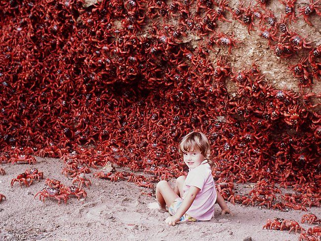 В Индийском океане на острове Рождества поздней осенью больше 120 миллионов крабов мигрирует из леса на пляж для размножения. Количество поражает!