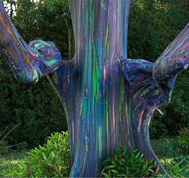 Кто раскрасил дерево? Сама природа! Ствол радужного эвкалипта, растущего в Индонезии, обладает разноцветной корой. Взрослое дерево переливается всеми цветами радуги.