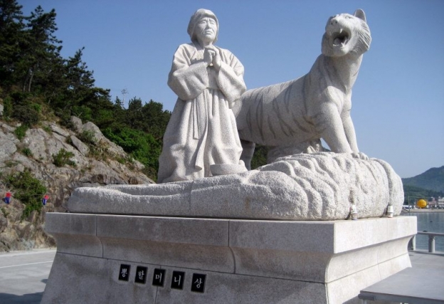 Море расступилось, и старушка отправилась в путь, но оказалась слишком слаба, чтобы преодолеть его. Тогда её близкие двинулись ей навстречу и забрали женщину. Умирая, старушка поблагодарила Дракона за помощь в её воссоединении со своими родными. С тех самых пор на острове каждый год проводятся обряды в память об этой женщине и невероятном чуде, которое совершил Дракон. А “морской путь” теперь украшает памятник тигру и бабушке.