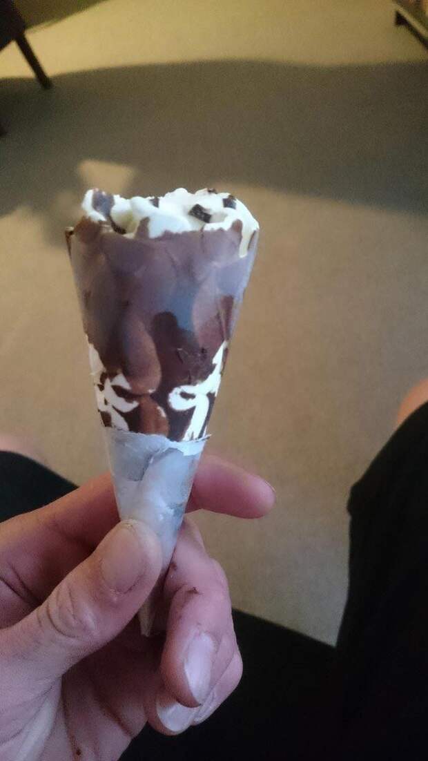 Мороженое-рожок забыли снабдить вафельным стаканчиком.