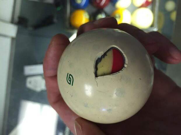 Внутри белого бильярдного шара спрятался полосатый шар.